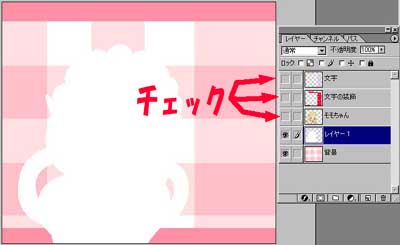 そして、非表示にしていたモモちゃんと文字を表示してみると